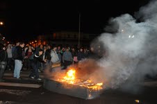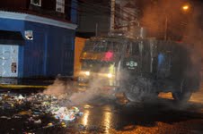 El acto no llegó a su fin, mientras que Crabineros intervino ante los incipientes desmanes, que n o pasaron a mayores. Sin embargo, un grupo de descolgados decidió continuar arrojando piedras por el sector y emprenderlas contra los ventanales del supermercado UNIMARC, de Manuel Rodríguez.