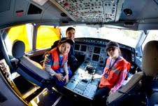 Ya en el aeropuerto de la capital, fueron recibidos por personal del programa “Un día en LAN”, que corresponde al Plan de Responsabilidad Social Corporativa de LAN Airlines, que tiene como finalidad acercar a los niños a la industria aeronáutica y, en especial, a la compañía, quienes dieron la bienvenida e invitaron a los viajeros a subirse al bus que los trasladaría al área de mantenimiento donde visitaron la cabina del Air Bus A 340, el avión más grande de la flota de LAN y de Latinoamérica.