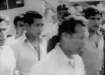Junto a los demás presos políticos, Luis Caucoto desfila hacia la cárcel de Pisagua, para el encierro.