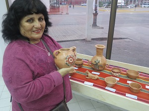 ELDA ASTUDILLO. Comunidad de Suca, Huara: Doña Elda dice sentirse feliz. En su caso, al incorporarse al proyecto “Tarapacá en el Camino del Inca”, tuvo la oportunidad por primera vez, de trabaja en alfarería. “Me sentí feliz, quiero hacer otro taller y seguir aprendiendo para mejorar la técnica”, expresó.