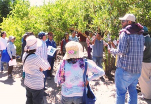La visita final fue a la parcela Santa Julia, que Enrique Arrollo mantiene en Pica, donde los agricultores aprendieron más sobre el uso eficiente del agua, con un taller a cargo del CIDERH.