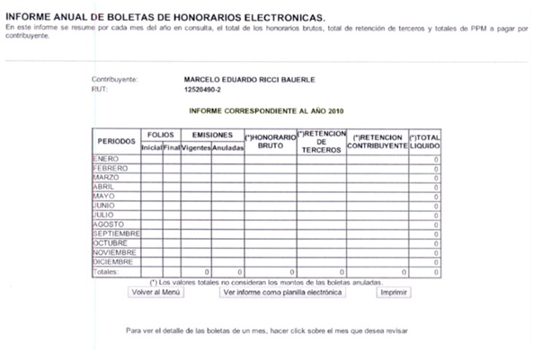 Junto a la nota, Ricci adjunta certificado de Renta emitido por el Servicio de Impuestos Internos y el informe anual de boletas de honorarios.