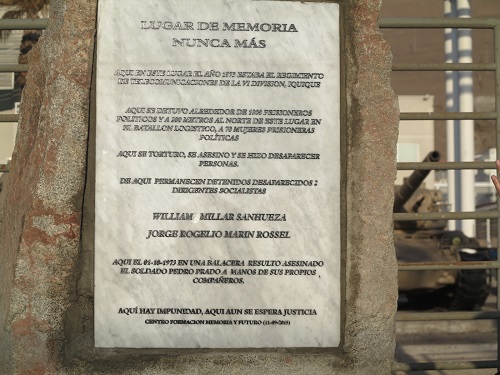 Este hecho marca un hito a la memoria, dejando un testimonio donde funcionó el regimiento como centro de prisión y tortura.