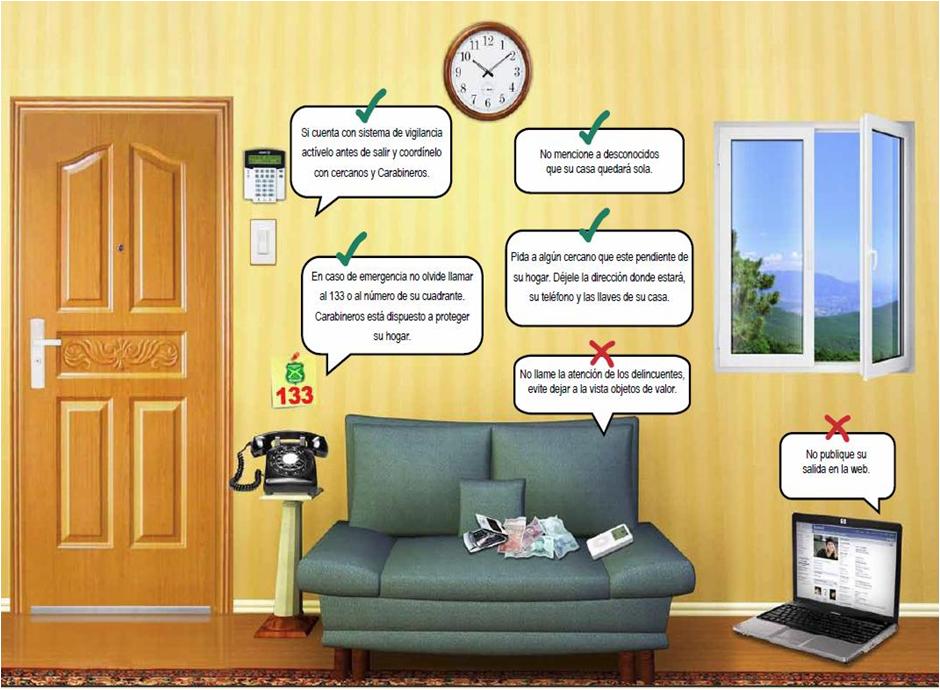 casa seguraCarabineros entregó recomendaciones a la comunidad para prevenir robos a domicilios, ya que durante el periodo estival muchas personas toman su periodo de vacaciones y dejan sus hogares sin moradores. El propósito de esta iniciativa es promover acciones de prevención entre la ciudadanía, en lo que respecta a la seguridad de sus propios hogares para evitar que sean víctimas de estos ilícitos.
