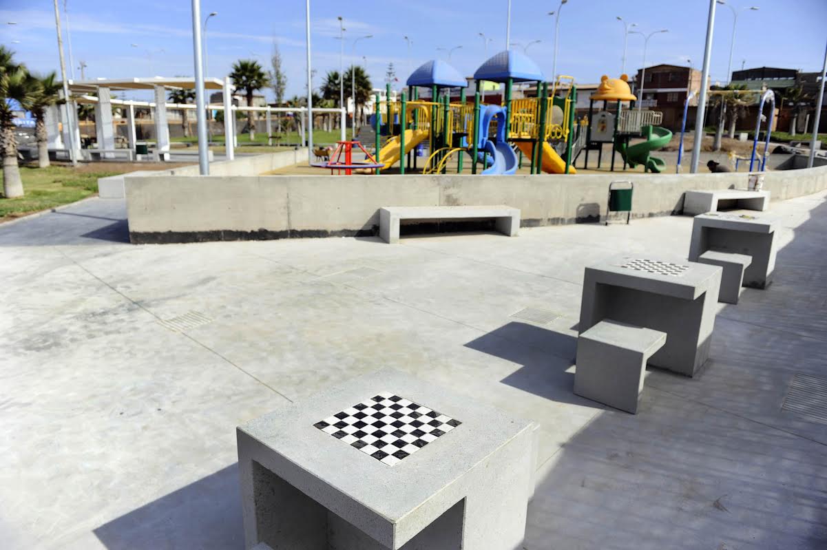 La plaza estará dotada de máquinas de ejercicios para incentivar la práctica de deportes, juegos, mesas para ajedrez, entre otros, que la convertirán en un centro neurálgico para los residentes del área sur de Alto Hospicio.