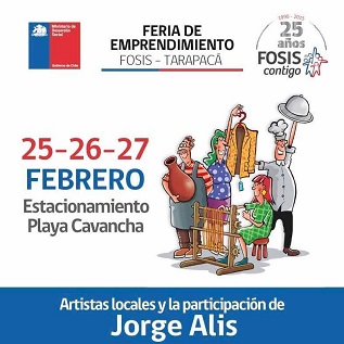 La segunda Feria de emprendimiento FOSIS Tarapacá, que pretenden generar canales de comercialización de los productos y servicios elaborados por los distintos microempresarios de la región, realizará ese servicio público, con la participación de unos 70 usuarios principalmente de los rubros de gastronomía, turismo, y artesanía. Estará abierta al público desde desde el mediodía hasta la media noche del último fin de semana de febrero, durante los 3 días que dure el evento.