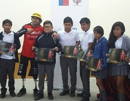 Ciento cincuenta niños y adolescentes de la comuna de Huara escucharon la charla motivacional, del destacado deportista nacional Adolfo Almarza, quien es competidor profesional de bicicleta de descenso (Downhill). Sin embargo Almarza no es un deportista común, debido a que perdió sus piernas en un accidente a los doce años, y que gracias a prótesis transtibiales construidas con fibra de carbono, hoy viaja por el mundo conduciendo su bicicleta.