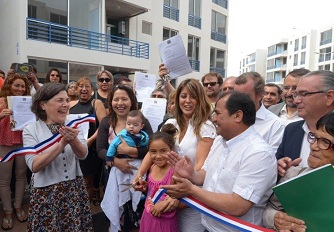 Junto con felicitar a las familias, la ministra Saball explicó que “no solo es inaugurar un conjunto habitacional, es inaugurar una nueva etapa en la vida de muchas personas. Hay un cambio en Chile y es que la vivienda social tenga un espacio importante en la ciudad”.