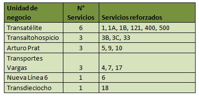 En Iquique y Alto Hospicio, se trata de 17 servicios (Se exceptúan los servicios trasnoche 3A. 94, 20 y la variante 10 Expreso que recorre Zofri a Bajo Molle), repartidos en los seis operadores del Transiquique, que permitirán entregar una frecuencia reforzada entre las 7:00 y las 17:00 horas, facilitando el desplazamiento de aquellas personas que serán parte de este relevante proceso ciudadano.