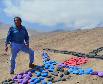 Este francés es conocido en el mundo entero por haber intervenido artísticamente en los principales desiertos del planeta y esta obra en el Desierto de Atacama se vislumbra como uno de sus últimos trabajos y en él quiere representar una línea temporal que va desde la creación del Universo hasta nuestros días, usando para esto la técnica del geoglifo.