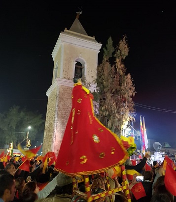 Y eso armó el conflicto porque los portadores no aceptaron la decisión de los cargadores. Todas estas dificultades sucedían mientras ya, el altar estaba listo y los peregrinos atestaban la plaza del pueblo. Se empezaron a poner impacientes porque no salía ni el obispo, ni la imagen del santo. Incluso, los más avezados y entendiendo que la salida de san Lorenzo desde el templo también es un ritual. Así, empiezan a gritar “que salga el santo”, “que salga el santo”.