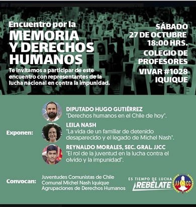Legado de Michel Nash, DDHH en el Chile de hoy y el rol de la juventud serán ejes temáticos de jornada Por la Memoria y los Derechos Humanos
