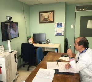 La doctora Tahía Alarcón, del Cesfam hospiciano citó al paciente sin que él supiera que sería parte de este novedoso programa. Al llegar se analizaron de inmediato sus exámenes para ver en qué estado se encuentra su cardiopatía coronaria, con el especialista que a través de una pantalla entregaba las indicaciones.
