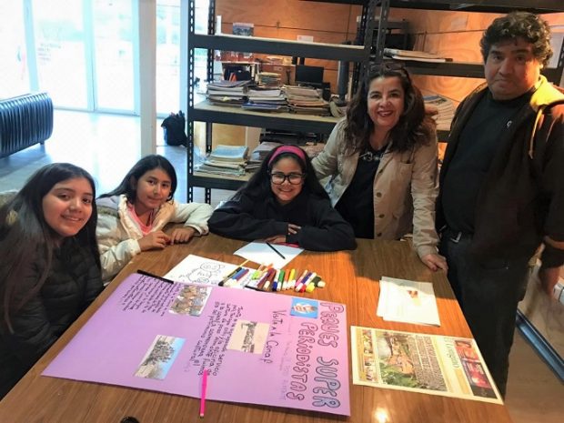 En ese contexto, Rodolfo Aguirre e Indalicia Lagos, miembros de la directiva del Colegio de Periodistas de Iquique, se reunieron con los Pequeños Súper Periodistas, para conversar sobre el trabajo en los medios de comunicación, los géneros periodísticos, la importancia de informar la verdad de los hechos y las fuentes de información; encuentro que culminó con un taller donde los jóvenes diseñaron y elaboraron una portada de diario.