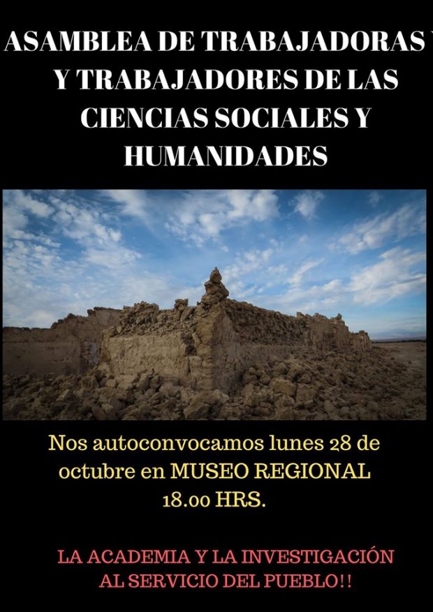 Profesionales de las Ciencias Sociales convocan para este lunes 28 a trabajadoras y trabajadores de las Ciencias Sociales y las Humanidades para debatir, analizar y tomar acciones concretas respecto del acontecer actual. «Existen demandas asociadas a la democratización, la justicia de género y el financiamiento de la investigación en Chile por las cuales no podemos estar ausentes ni en pasividad», señalan los convocantes.