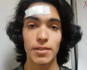 Dijo el joven que él no estaba haciendo ningún tipo de desorden cuanto sintió el impacto en su frente, pero nunca imaginó que era un perdigón.