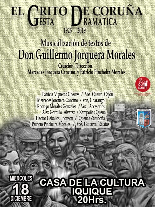 Casa de la Cultura, 20.00 horas: «El grito de Coruña», musicalización de textos de Guillermo Jorquera Morales