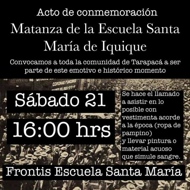 Con motivo de los 112 años de la masacre de la Escuela Santa María de Iquique, se realizarán diversos actos conmemorativos.