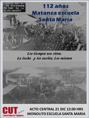 Intervención autoconvocada para conmemorar este 21 de diciembre, la Masacre de la Escuela Santa María, a 112 años del exterminio masivo de obreros del salitre