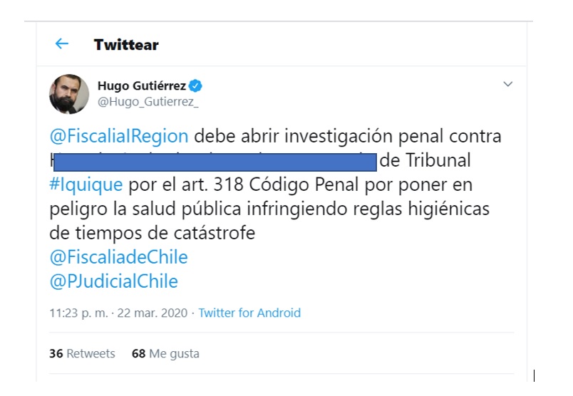 @FiscaliaIRegion debe abrir investigación penal contra Horacio Andrade, abogado y secretario de Tribunal #Iquique por el art. 318 Código Penal por poner en peligro la salud pública infringiendo reglas higiénicas de tiempos de catástrofe.