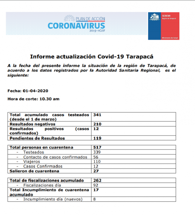 Posted by Gobierno Regional de Tarapacá on Wednesday, April 1, 2020