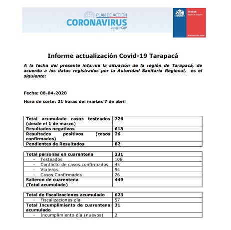 Posted by Gobierno Regional de Tarapacá on Wednesday, April 8, 2020