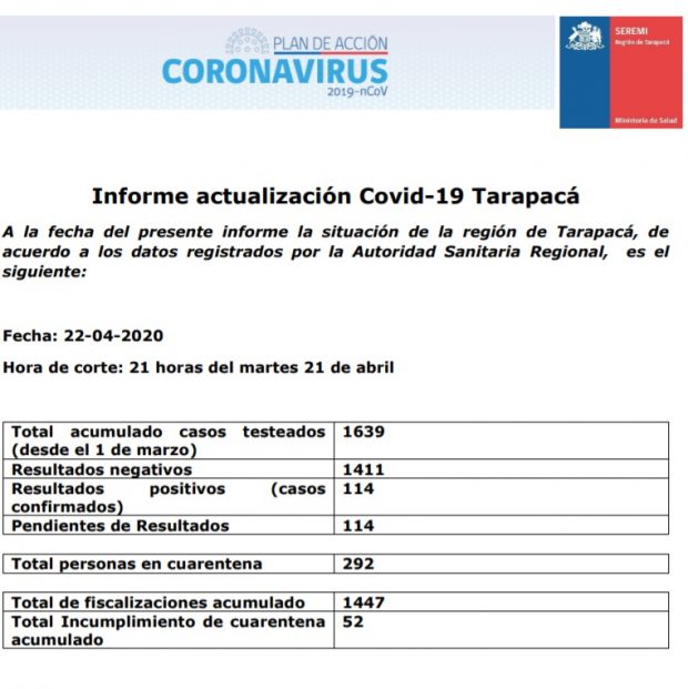 Posted by Gobierno Regional de Tarapacá on Wednesday, April 22, 2020