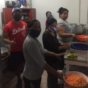 Los alimentos se preparan gracias al aporte del mismo partido, personas de buen corazón y de los bolivianos residentes. Además, quienes disponen de un poco de dinero, lo reúnen para las compras específicas. “Hemos visto que trabajan con mucha solidaridad y sentido de colaboración. Eso es muy destacable”, señaló Moraga.
