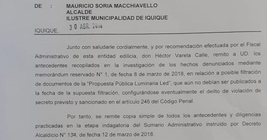 La investigación en torno a la Compra de luces led para Iquique y que ahora explotó con la detención de concejales y funcionarios municipales, es una situación de antigua data. Tanto así que el alcalde Mauricio Soria había ordenado en marzo de 2018 un sumario administrativo sobre la “Propuesta Pública Led”….