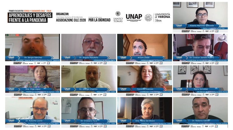 En la actividad fue liderada por la Universidad Arturo Prat. Además, participaron la Universidad Santo Tomás, la Universidad de Verona, el Comité Italiano de Solidaridad 2020 e Independientes por la Dignidad, además de especialistas tanto de Chile como Italia, conversando acerca de las experiencias médicas frente a la pandemia del COVID-19.