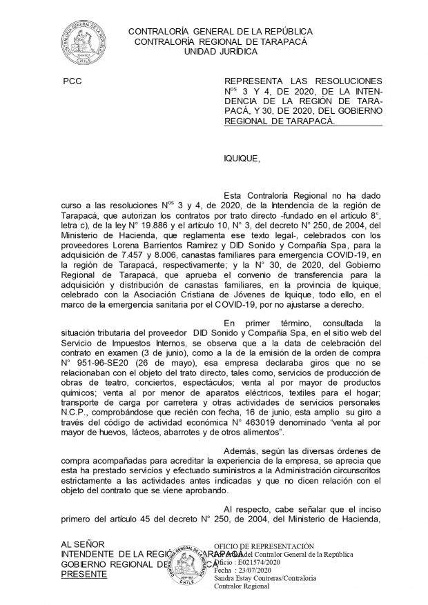 Concejal Matías Ramírez destaca pronunciamiento de la Contraloría en Tarapacá, al declarar ilegales la compra por caja de alimentos, en función de una serie de irregularidades.Junto al Diputado Hugo Gutierrez y el Consejero Regional Pedro Cisternas, presentarán acciones ante la justicia, por Tráfico de influencia, negociación incompatible y eventual fraude al Fisco.