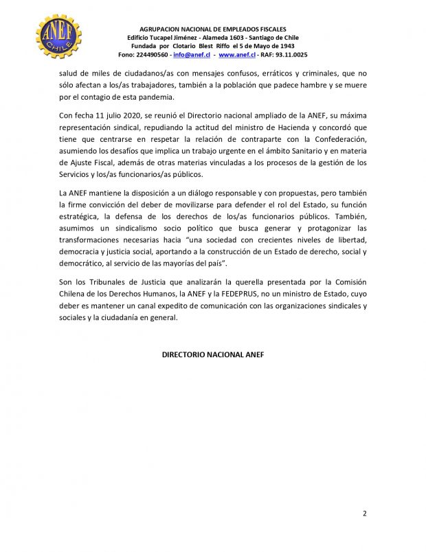 Publicado por Anef Chile en Domingo, 12 de julio de 2020