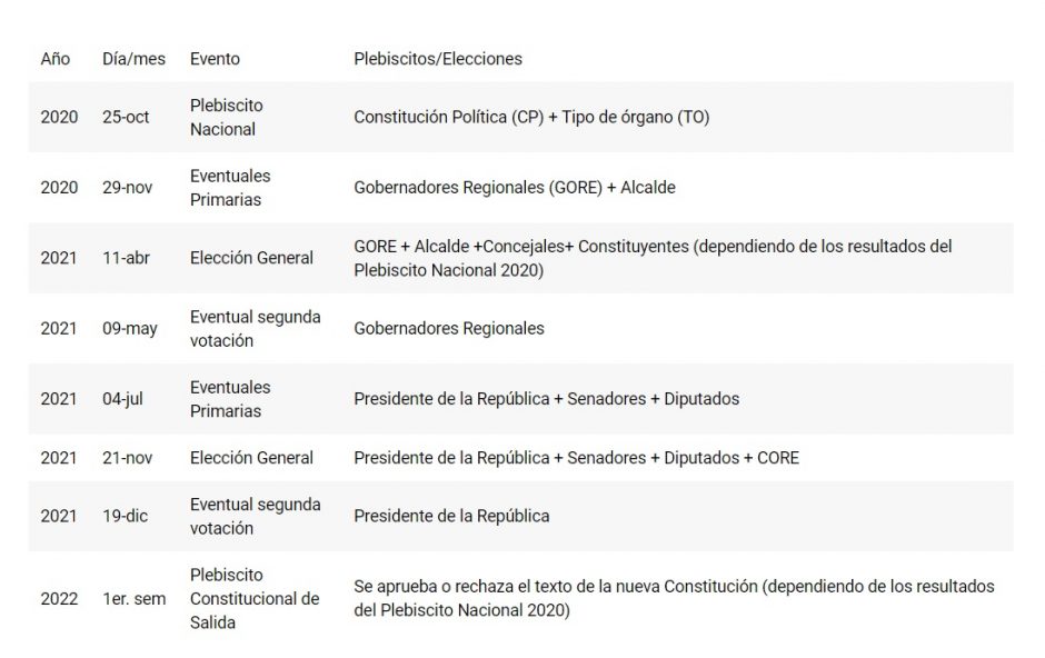 Ocho son los candidatos que se inscribieron para participar en las primarias legales para gobernadores, que se verificarán el próximo 29 de noviembre, de acuerdo con el cronograma del SERVEL. Las elecciones oficiales y generales serán el 11 de abril de 2021, donde además de gobernadores, se escoge a alcaldes, concejales y constituyentes.