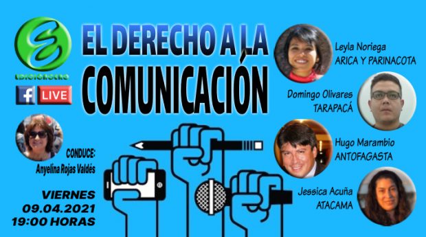 Inspirado en los grandes temas de la comunicación, preocupación principal del Colegio de Periodistas de Chile, nuestro Portal Edición Cero, realizará este viernes 9 de abril, a las 19.00 horas, el Conversatorio «Derecho a la Comunicación», con una mirada a través de la macrozona norte, con la participación de periodistas de Arica-Parinacota, El Loa en Antofagasta y Copiapó.