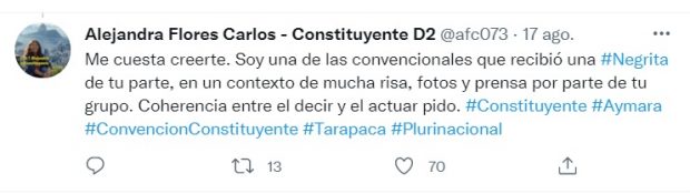 Me cuesta creerte. Soy una de las convencionales que recibió una #Negrita de tu parte, en un contexto de mucha risa, fotos y prensa por parte de tu grupo. Coherencia entre el decir y el actuar pido. #Constituyente #Aymara #ConvencionConstituyente #Tarapaca #Plurinacional