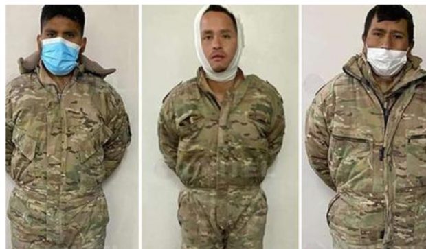 Imagen que se publicó en los medios de Bolivia y que muestra a los tres funcionarios del Ejército, imputados en Chile.