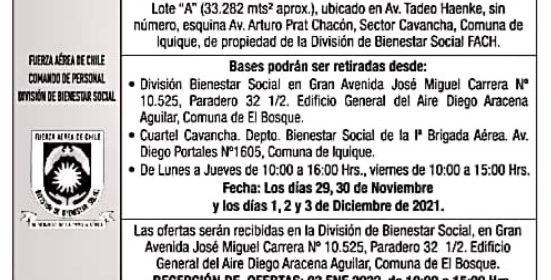 Serios cuestionamientos a la licitación pública convocada por la División de Bienestar de la FACH, que oferta más de 33 mil metros cuadrados de terreno, en Tadeo Haenke con Avenida Arturo Prat, hizo el diputado electo por Tarapacá, Matías Ramírez Pascal. Considera que es un verdadero negocio inmobiliario. El futuro…