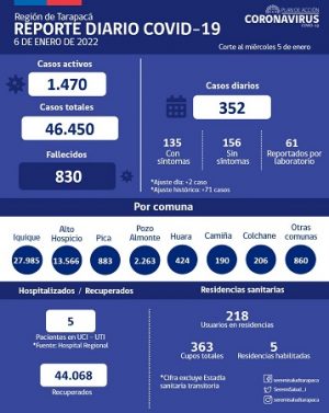 En tanto, la autoridad sanitaria informó en su último reporte, que en Tarapacá se registraron 352 casos.