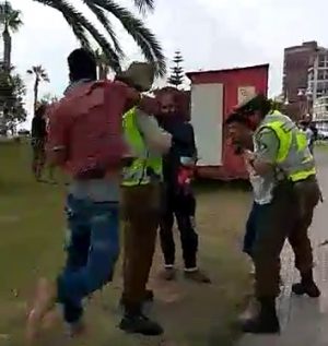 Verdadera conmoción causó en la ciudad, la violenta respuesta a dos policiales que hacían control en la Playa Cavancha, siendo agredidos cuando intentaban detener a un grupo de hombres, tras sorprenderlos con droga. Los cuatro detenidos resultaron ser migrantes, tres de ellos fueron llevados a constatar lesiones al Hospital de Iquique.