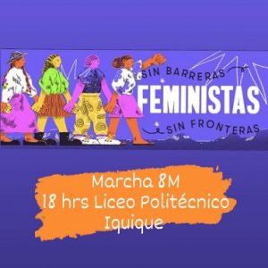 En Iquique como en casi todo el mundo, este martes 8 de marzo -8M 2021-, se conmemora el Día Internacional de la Mujer, cuya actividad central será una marcha que a eso de las 18.00 horas, saldrá desde el frontis del Liceo Politécnico. La actividad es organizada por la Red Feminista de Tarapacá.