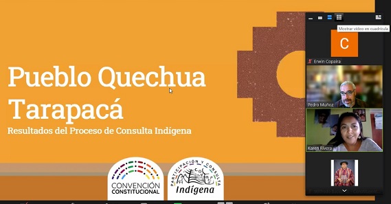 Con un encuentro telemático a través de Zoom, el convencional Wilfredo Bacian Delgado difundió con representantes de distintas comunidades quechua del país los resultados del proceso de participación y consulta indígena que llevó a cabo la Convención Constitucional, cuyo informe fue presentado esta semana a la mesa directiva representada por María Elisa Quinteros y Gaspar Domínguez, presidenta y vicepresidente del órgano constituyente.