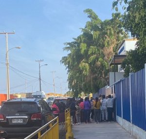 Padres en las afueras del Liceo Padre Hurtado de Pica, reclamando por las matrículas para sus hijos y por las raciones JUNAEB.
