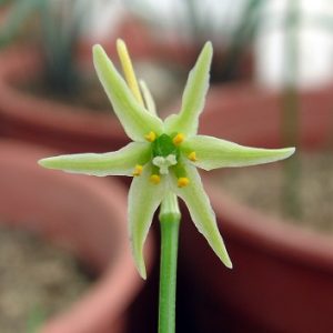 Nicolás García cuenta que la denominación de la especie como minutiflorum hace referencia al tamaño diminuto de sus flores verdosas a blancuzcas. La planta completa mide entre 7 a 12 centímetros de altura y se ha encontrado solo en tres localidades costeras del norte de Chile, cerca de Iquique y Antofagasta.