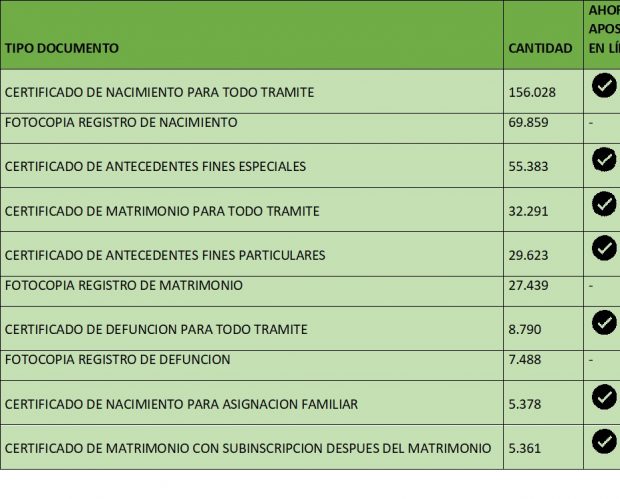 Hasta ahora, los documentos del Registro Civil que necesitaban ser apostillados se debían llevar a una oficina. Con la incorporación de la solicitud para apostillar en www.registrocivil.cl es posible obtener, por ejemplo, un certificado de nacimiento, tras solicitar el documento, se le preguntará si necesita apostillarlo y si es así debe seleccionar el país donde lo presentará. De esta forma, recibirá en su correo el certificado apostillado de inmediato.