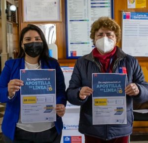 Desde ahora es posible apostillar en línea 28 certificados, entre ellos el de antecedentes, nacimiento, matrimonio y defunción. Esta noticia fue dada a conocer por la Secretaria Regional Ministerial de Justicia y Derechos Humanos, Camila Castillo Guerrero, y la Directora Regional del Servicio de Registro Civil e Identificación, Ema Moreno Chamorro, durante esta jornada.