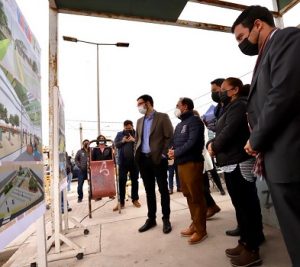 Al medio día el subsecretario Crispi, acompañado del gobernador y el delegado, se trasladaron a la comuna de Alto Hospicio para, junto a la comunidad y su alcalde, Patricio Ferreira, dar inicio a las obras de mejoramiento de la Plaza “Nueva Esperanza”, una iniciativa financiada a través del PMU de la Subdere y que incluye pintura y renovación del mobiliario existente, nuevos juegos infantiles y acceso universal.