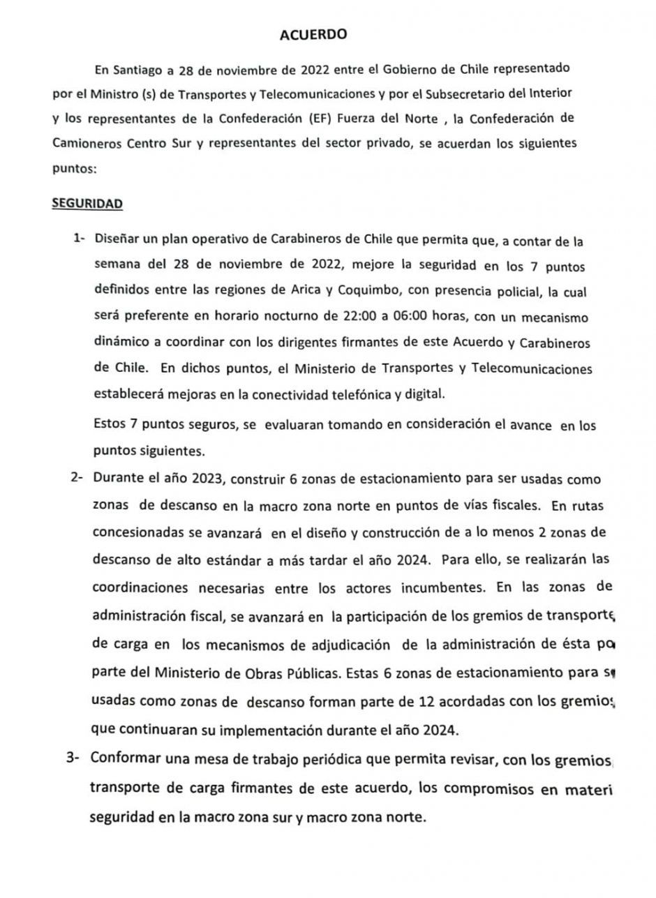 Un positivo balance realizó el delegado presidencial regional de Tarapacá, Daniel Quinteros, tras el acuerdo logrado entre el Gobierno y los gremios de camioneros... Fin al paro de camioneros, luego de la firma de acuerdo entre el Gobierno y ese gremio. Positivo resultado luego de movilizaciones y negociaciones