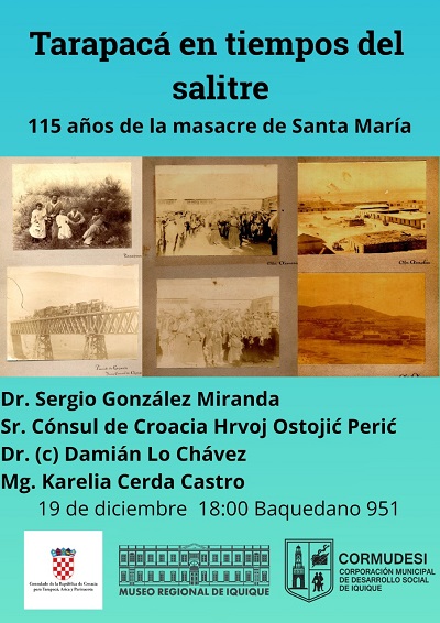 De las actividades ya realizadas, destacan el Conversatorio “Tarapacá en tiempos del salitre”, que se llevó a cabo este lunes 19 de diciembre, en dependencias del Museo Regional de Iquique y con el apoyo de la Cormudesi.