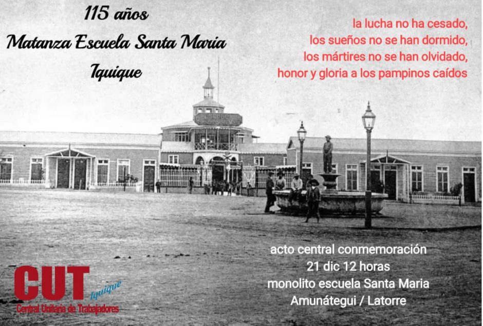 A 115 años de la masacre de la Escuela Santa María de Iquique. Acto central se realizará en el Monolito que recuerda a obreros del salitre