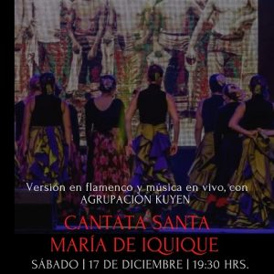 Por quinta vez la Cantata de la Escuela Santa María de Iquique, será conmemorada de una manera muy particular, mediante una singular versión en flamenco, que pone en escena la Compañía de Carmen Álvarez. La presentación se realizará a más de mil 700 kilómetros de Iquique, específicamente en la Casa de la Cultura de la Municipalidad de Talagante.